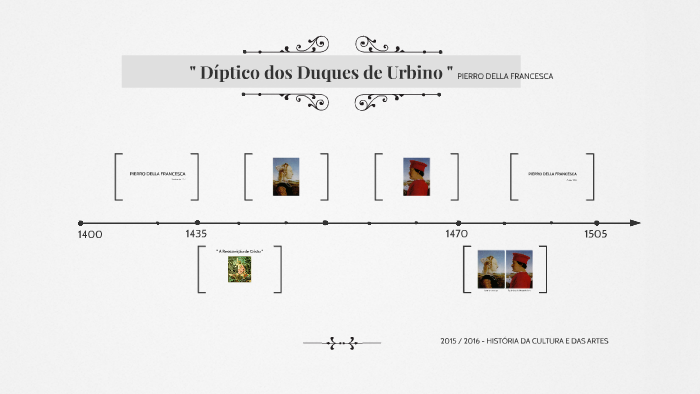 Se trata de un díptico pintado por ambas caras. En una se ven los retratos del duque de Urbino Federico da Montefeltro y su esposa Battista. Se encuentra entre los primeros retratos renacentistas. Los dos cuadros estuvieron en un tiempo unidos por un único marco. El retrato, de perfil como los de las monedas romanas, está influido por el arte de la acuñación de medallas, «produce una mayor idealización que el retrato de tres cuartos» y es típico de la pintura italiana de la época.[2]